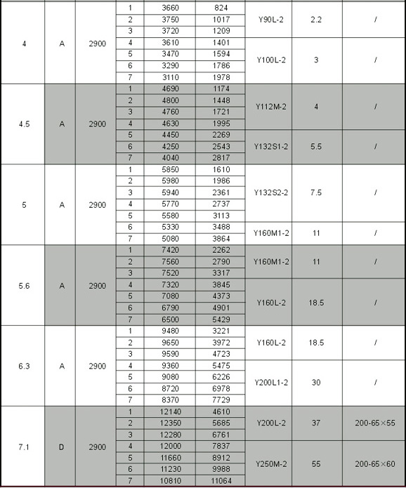 規(guī) 格:4#~16#, 風(fēng)量: 824~81496m3/h. 風(fēng)壓: 3253~ 16250 Pa。