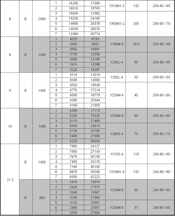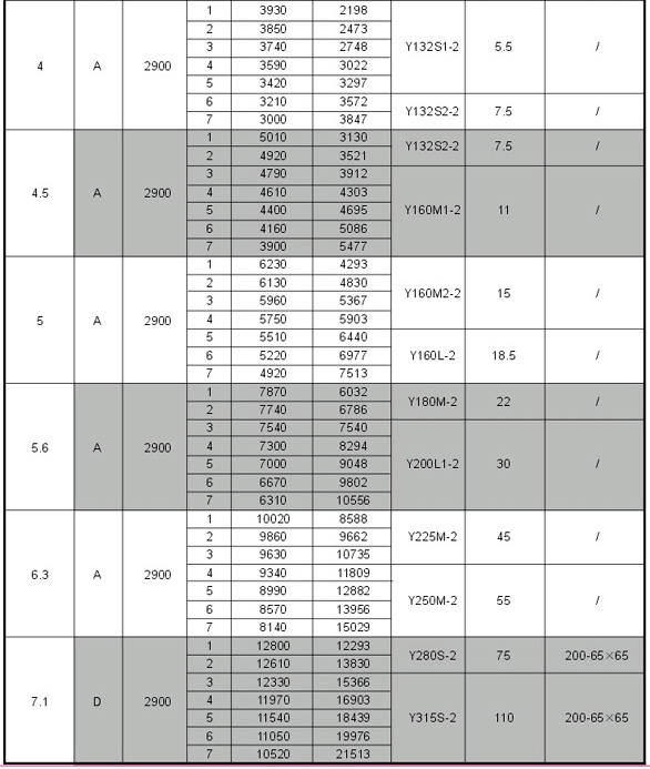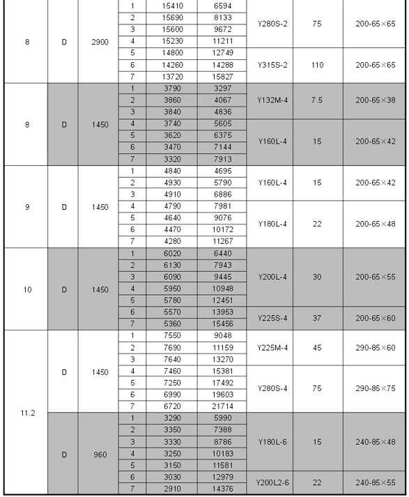 9-19型離心風(fēng)機(jī)性能參數(shù)表